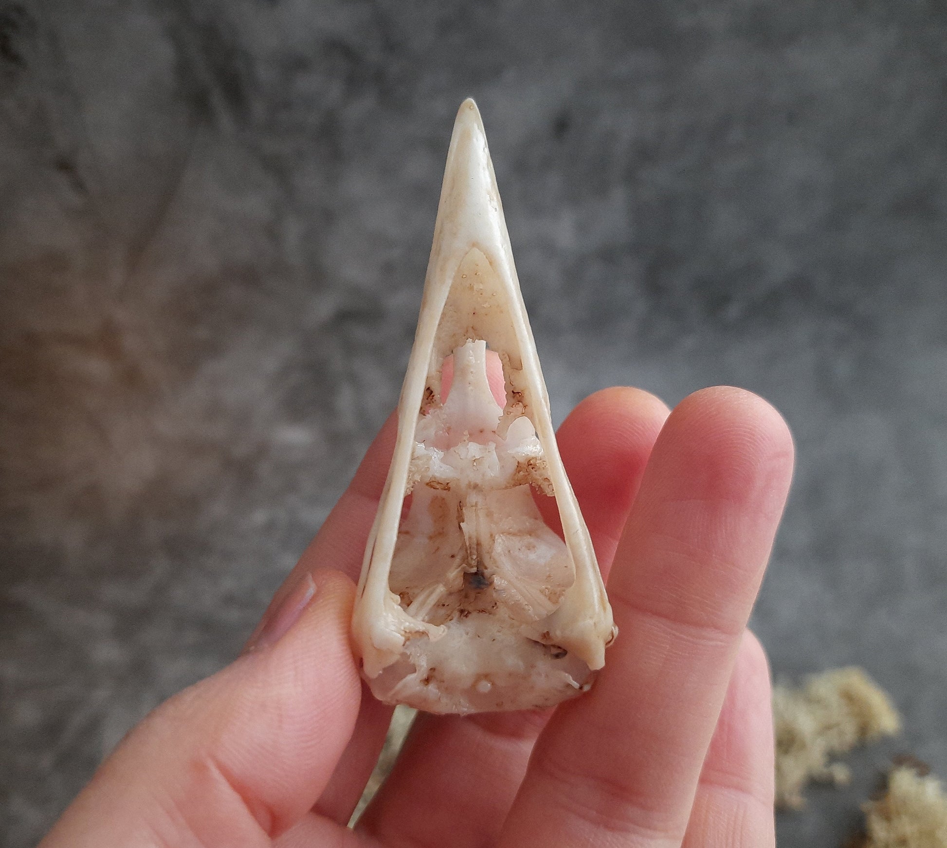 Als Vorlage diente ein Micro CT Scan eines Rabenschädels, Corvus corax, daher ist er sehr naturgetreu! Der Scan wurde freundlicherweise von dem D’Arcy Thompson Zoology Museum zur Verfügung gestellt.